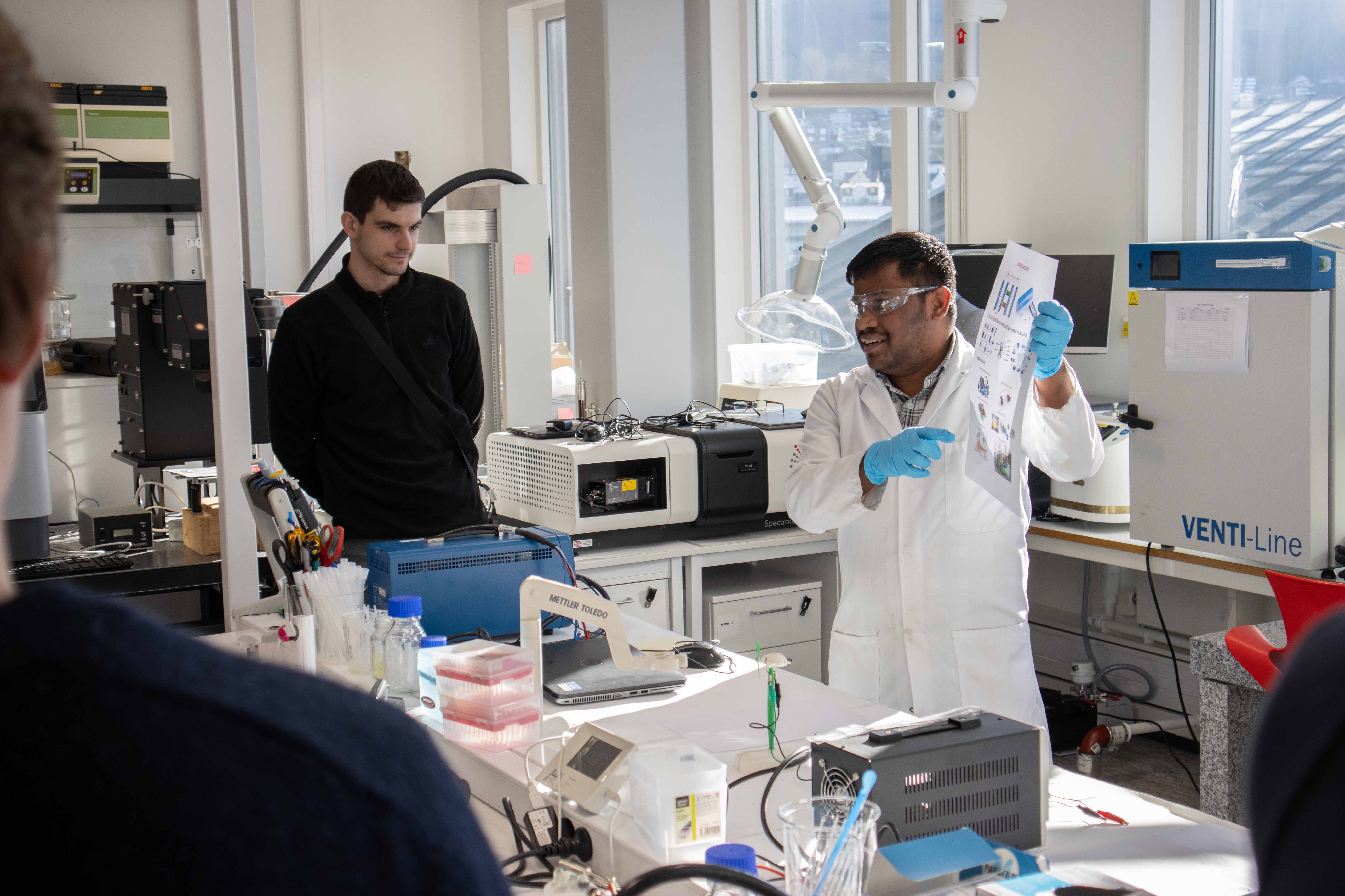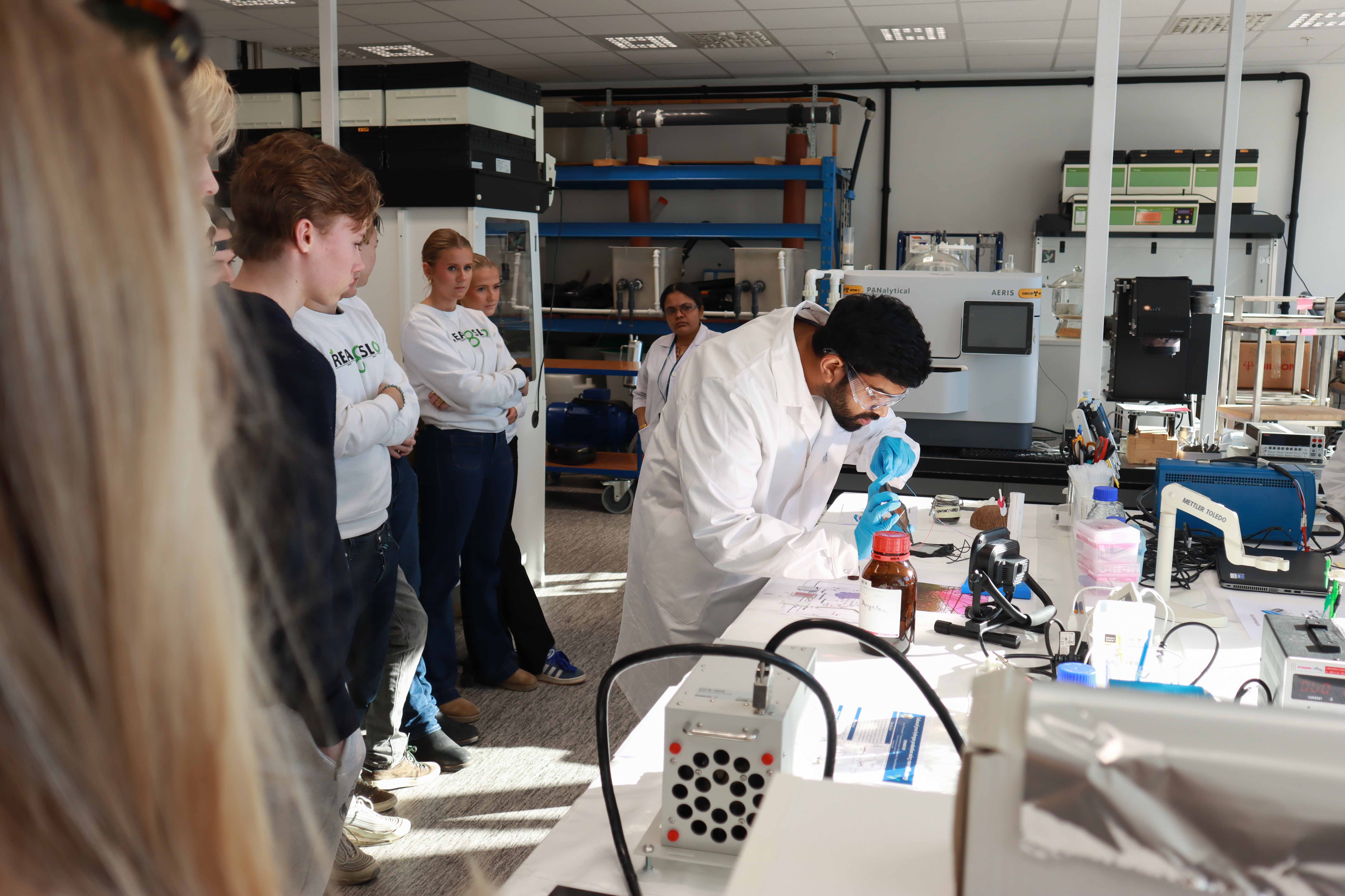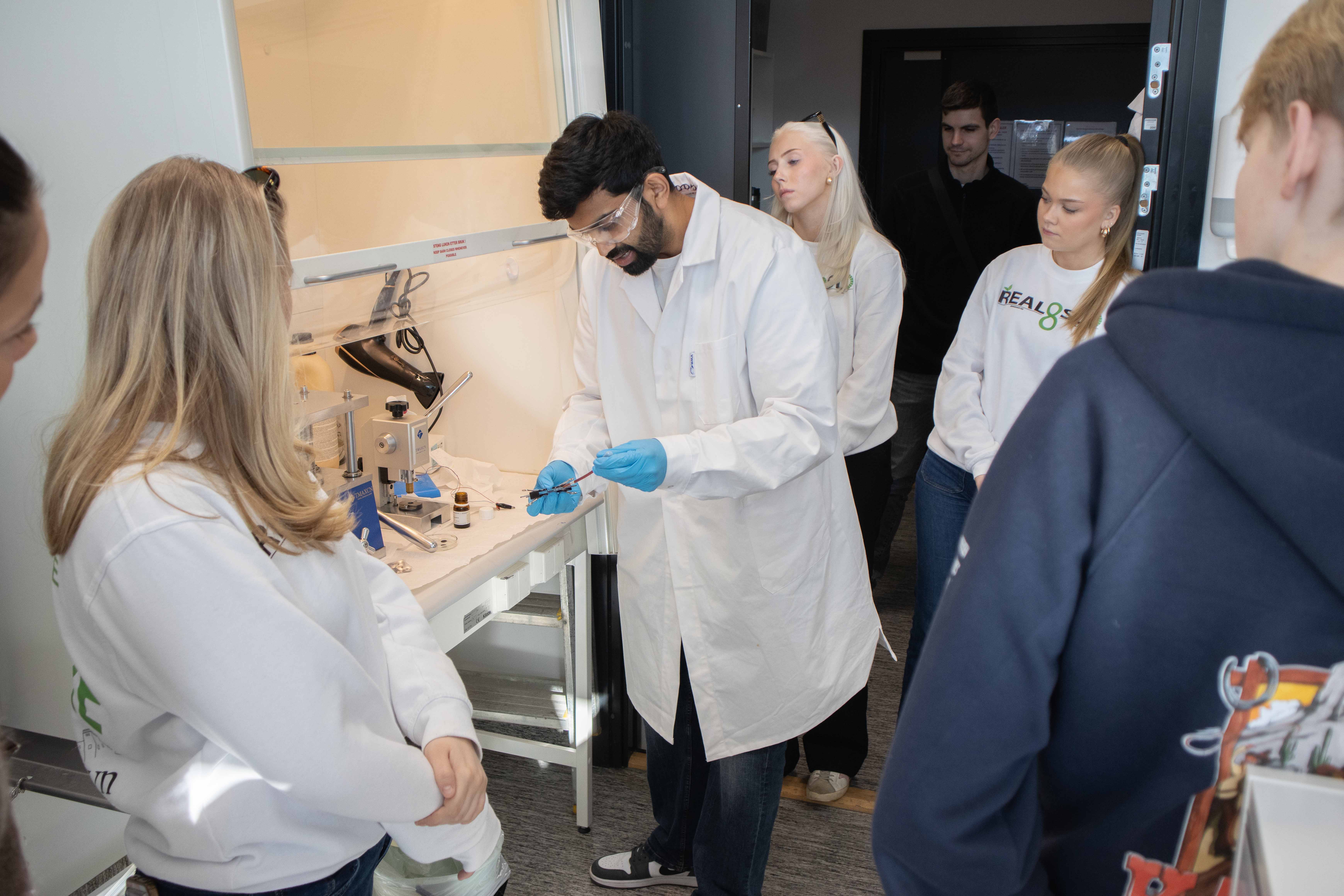 I tillegg får dei vere med på forsøk i toppmoderne laboratorium, der dei får sjå dyktige doktorgradsstipendiatar i aksjon.