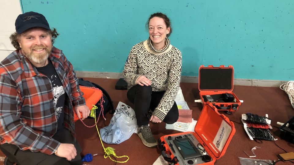 Blant dei som har jobba med å førebu feltarbeidet på Jostedalsbreen, er Mette Kusk Gillespie og Sigurd Daniel Nerhus. Dei har tredd radioantenner gjennom hageslangar for å beskytte dei på ferda, og førebudd alt ustyret som skal til elles. I starten av feltarbeidet må dei fly snøskuterar og folk opp med helikopter. Dei blir 16 personar i alt som skal jobbe oppe på breen i løpet av april – nokre frå HVL, nokre frå Universitetet i Bergen og nokre frå NVE, begge samarbeidspartar i prosjektet.