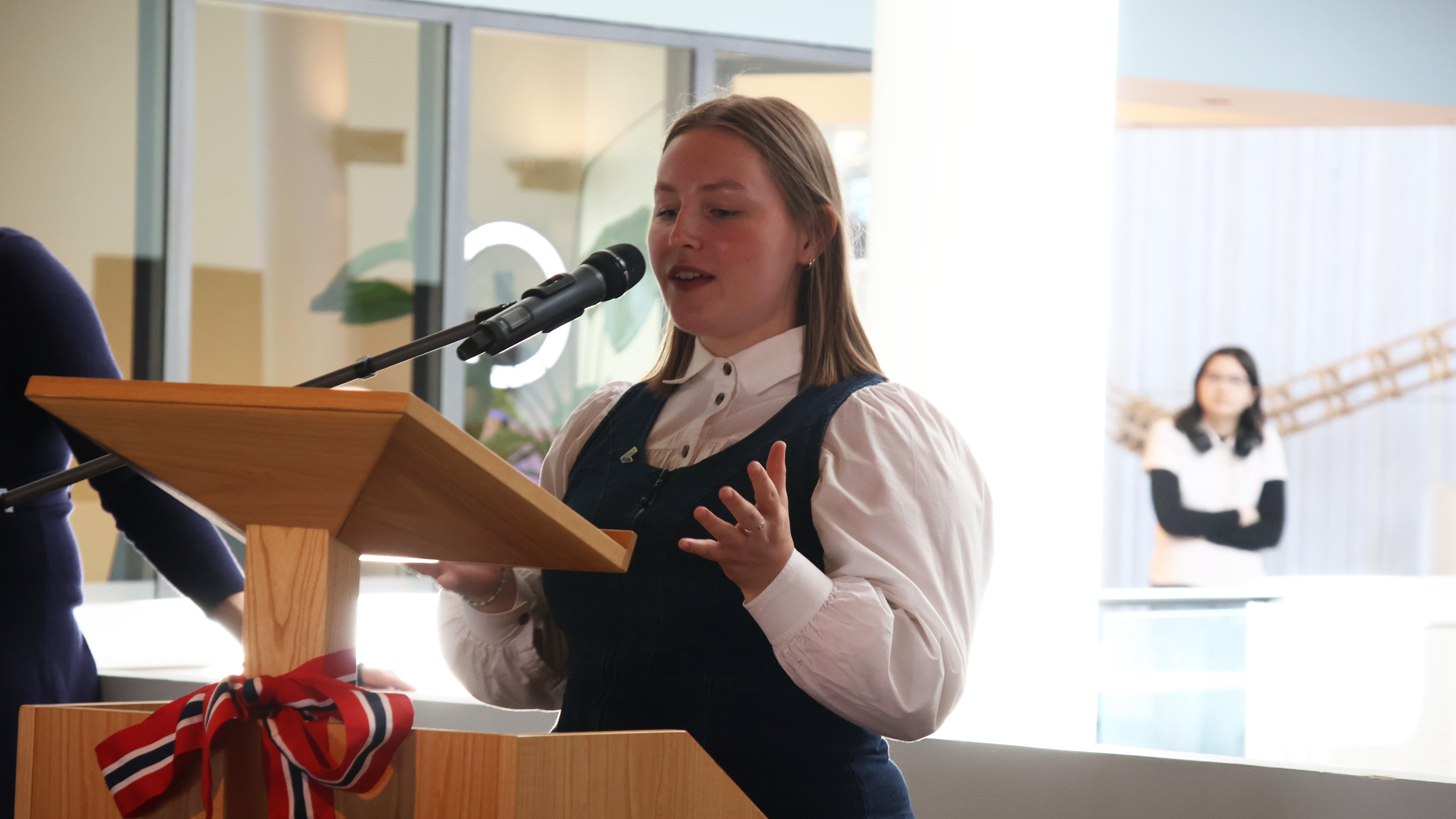 Studenttingsleiar Andrea Grutle er glad for at nybygget gir studentane gode moglegheiter i studiekvardagen.