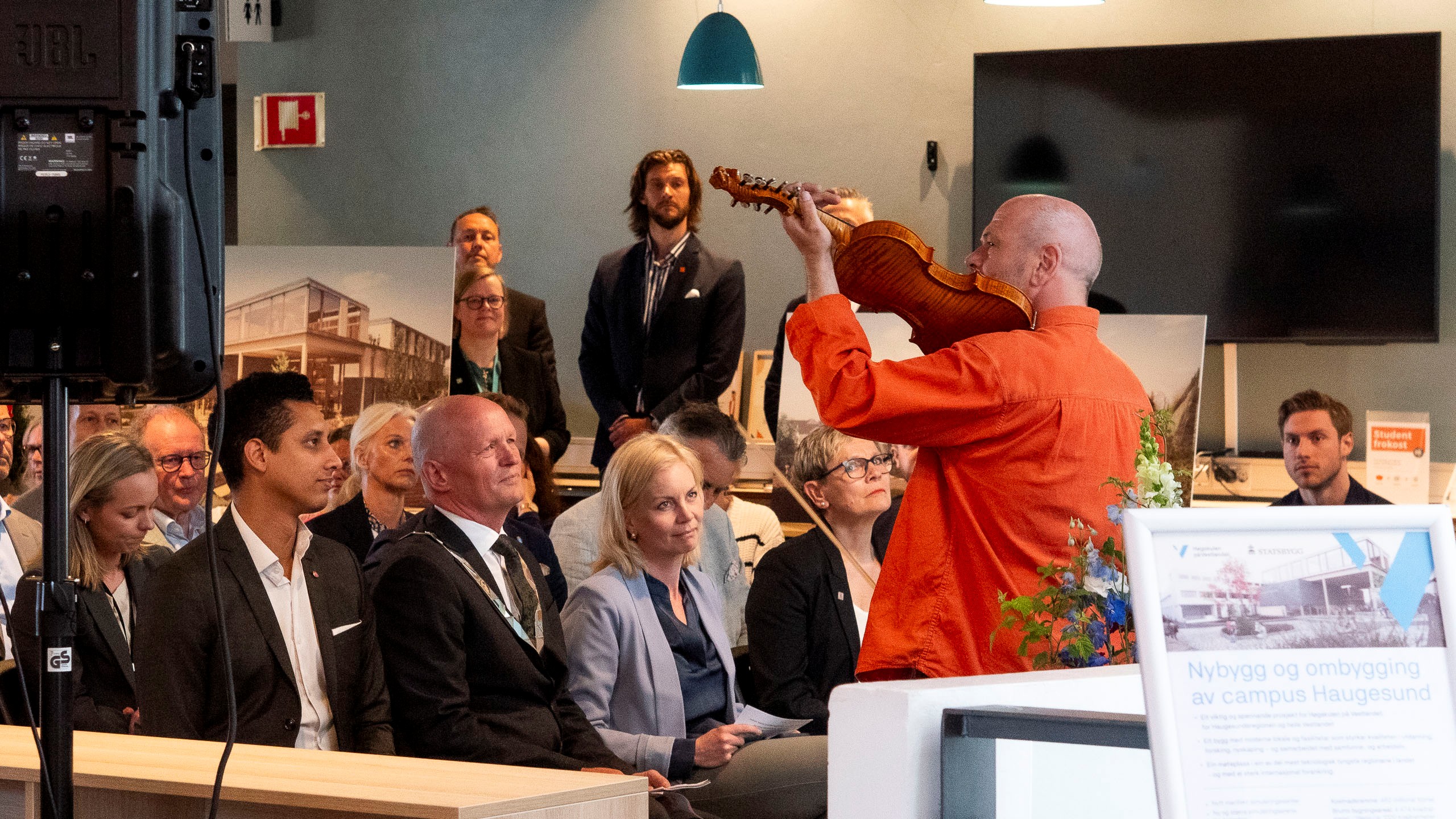 – Nybygget er ei viktig satsing for byen vår. Det vil kople HVL og byen endå tettare samen. Det nye universitetet ser me verkeleg fram til, helste ordførar Nils Konrad Bua i Haugesund kommune.