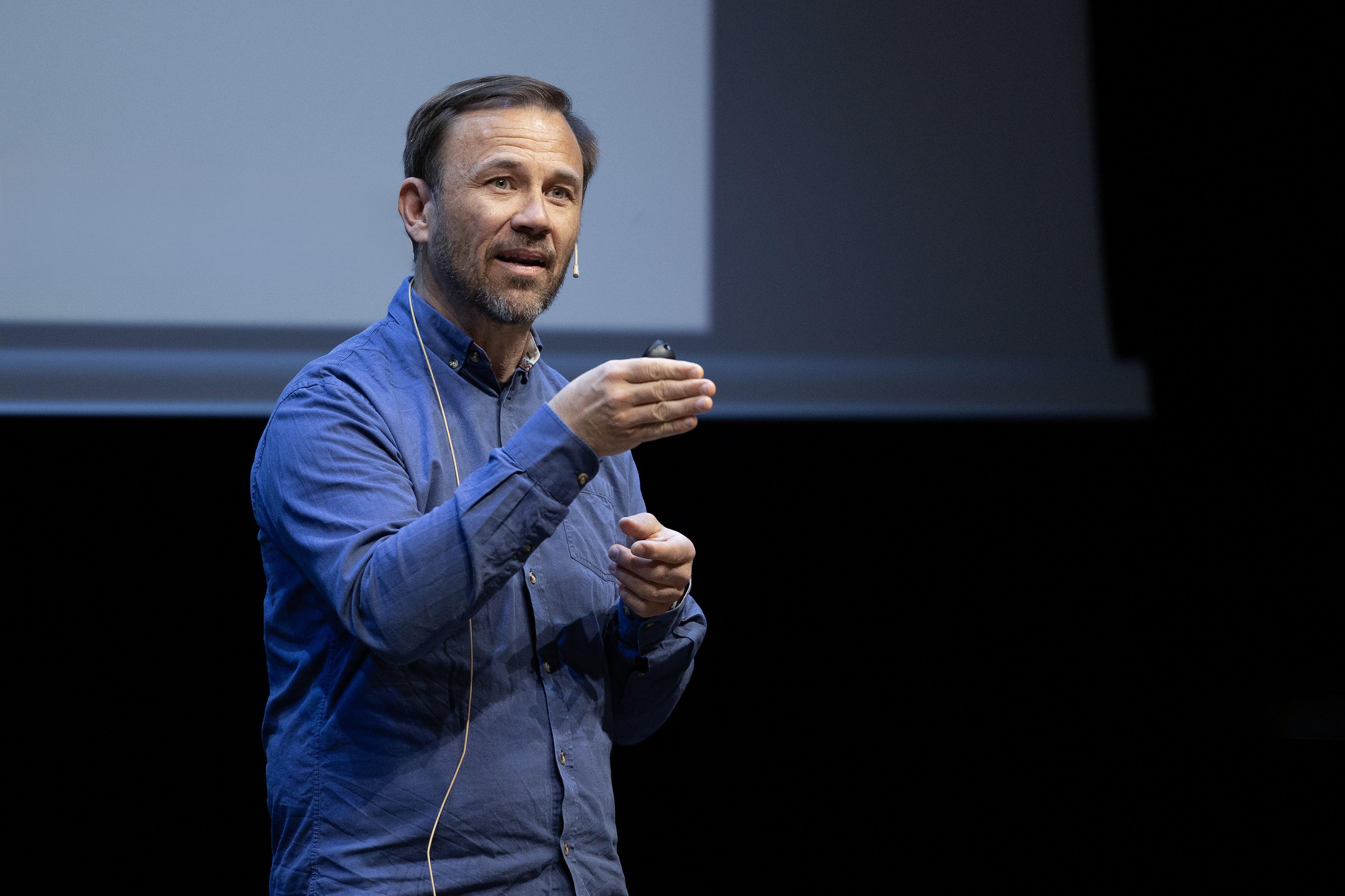 Glenn Øvrevik Kjerland fekk tildelt status som merittert undervisar ved HVL i 2022. Under konferansen snakka han om læring og kunstig intelligens.