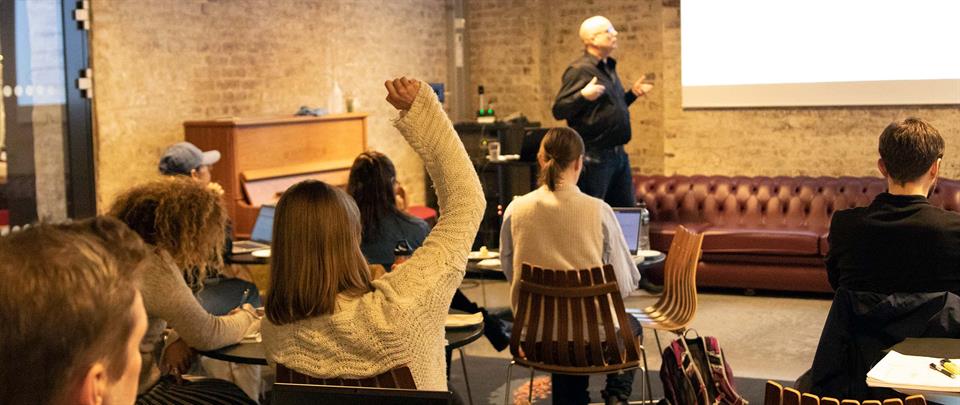 Stig Erik Jakobsen underviser doktorgradsstudenter i et kurs på RESINNREG-programmet.
