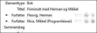 OBS! Etter siste forfattar (etter fornamn) legg du inn eit mellomrom og (Programleiar/ar) eller (Programleder/e). Da vil du få med denne opplysinga i litteraturlista.