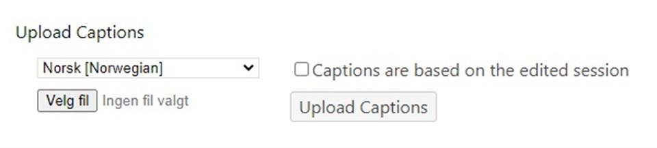 - Under "Upload captions", select the language and the file you want to upload. Then press the button to upload the captions.