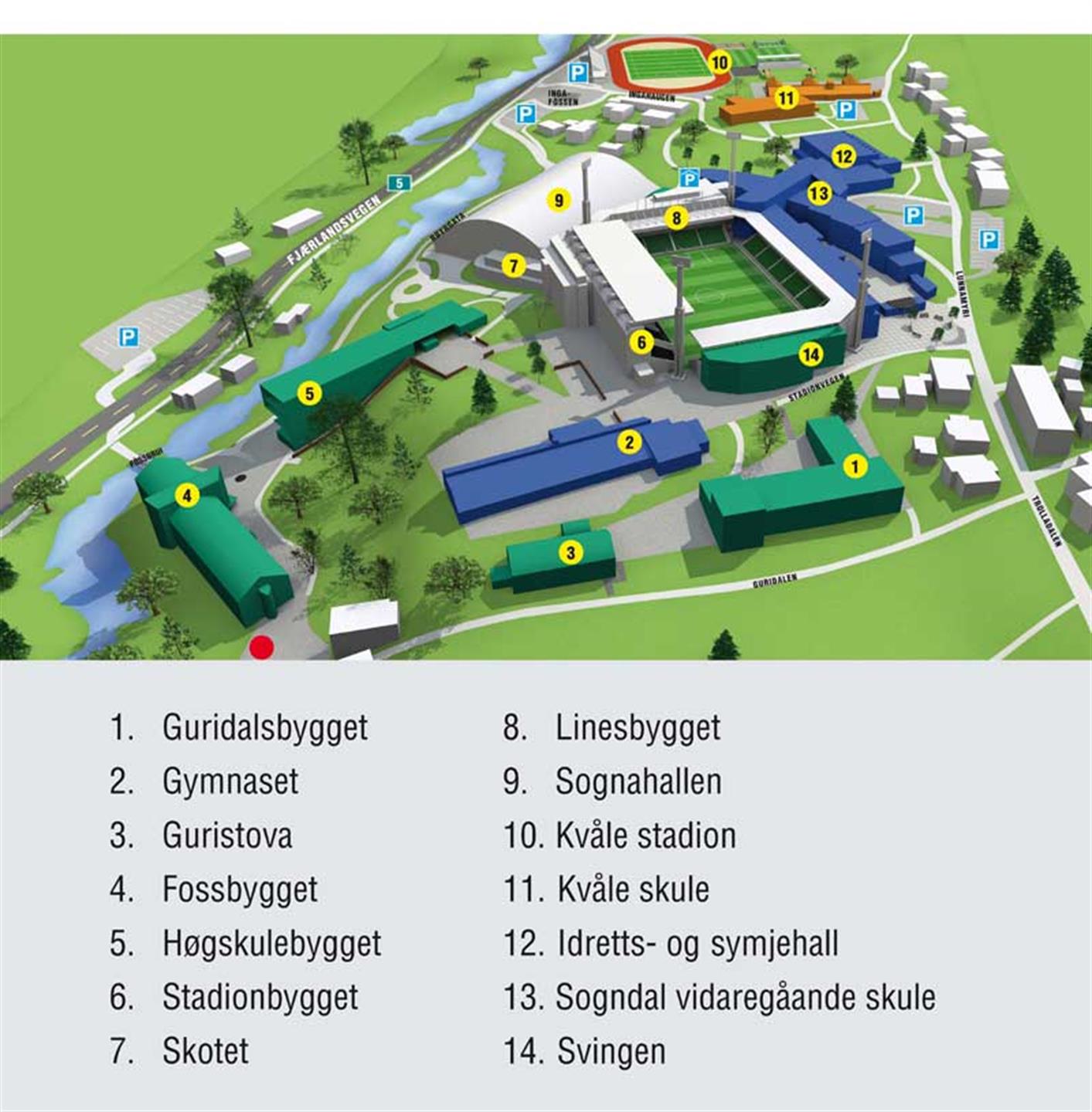 The campus in Sogndal contains different buildings. In the main building Høgskulebygget you’ll find the Student information service, the administration offices, library and the cafeteria.