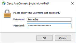- Enter: vpn.hvl.no/Student if there is no pre-filled information in the program.