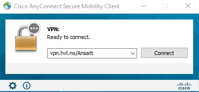 - Enter: vpn.hvl.no/Ansatt if there is no pre-filled information in the program.