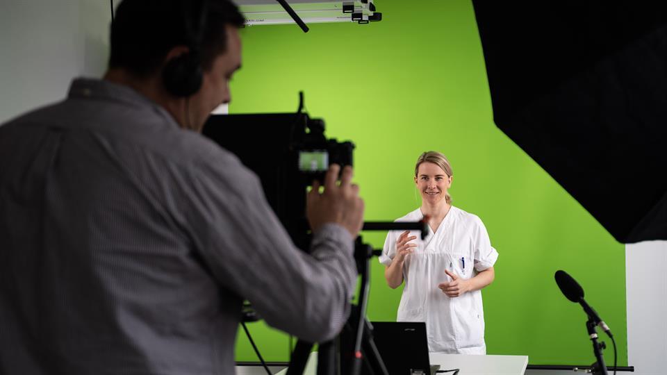 SimArena har et eget medierom som ansatte på HVL kan bruke for å lage digitale læringsressurser.