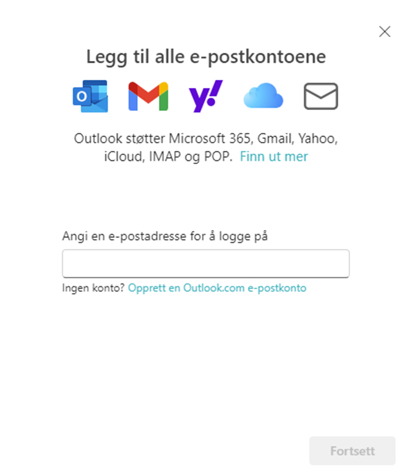 Disse trinna er de samme enten du legg til din første e-postkonto eller fleire e-postkontoer i Outlook.