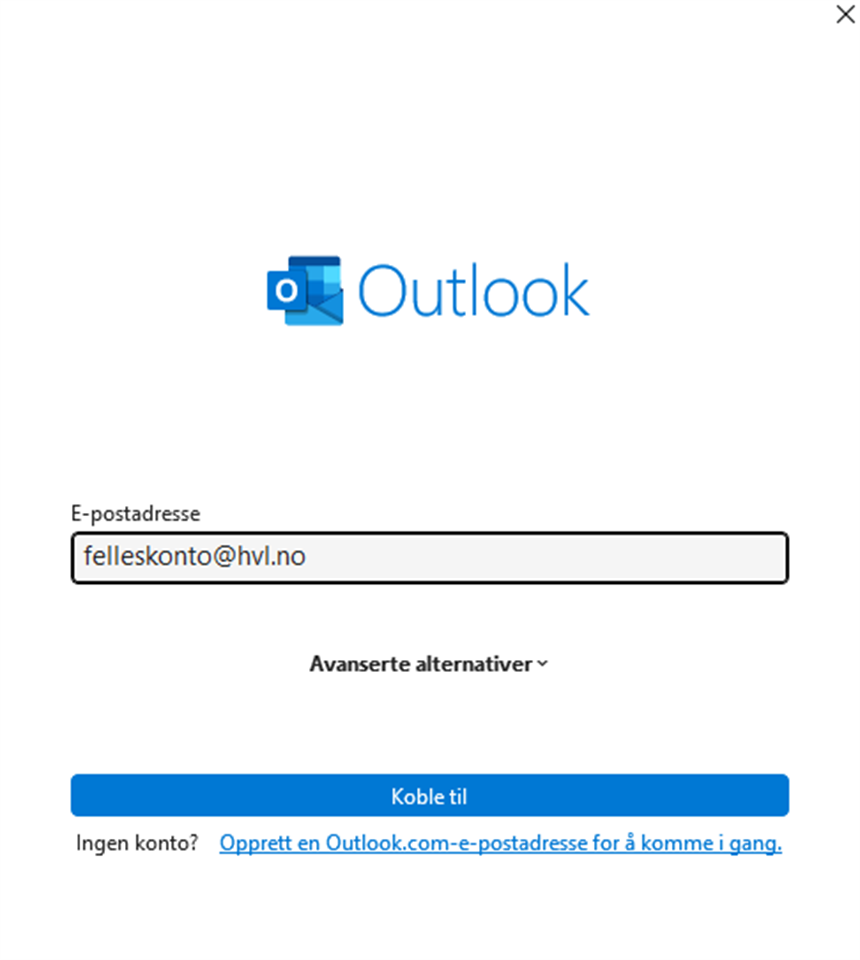 I dialogboksen som dukkar opp, skriv inn e-postadressa du vil leggje til, og klikk Koble til.