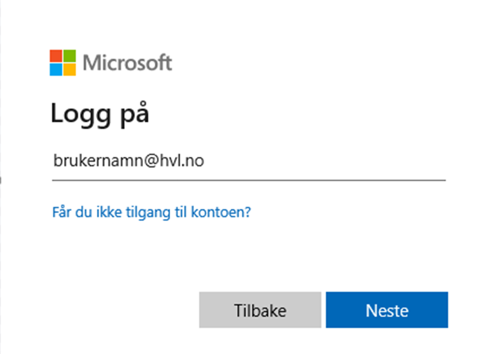 - Skriv inn din fulle e-postadresse. For eksempel: vegard.anuglen@hvl.no.