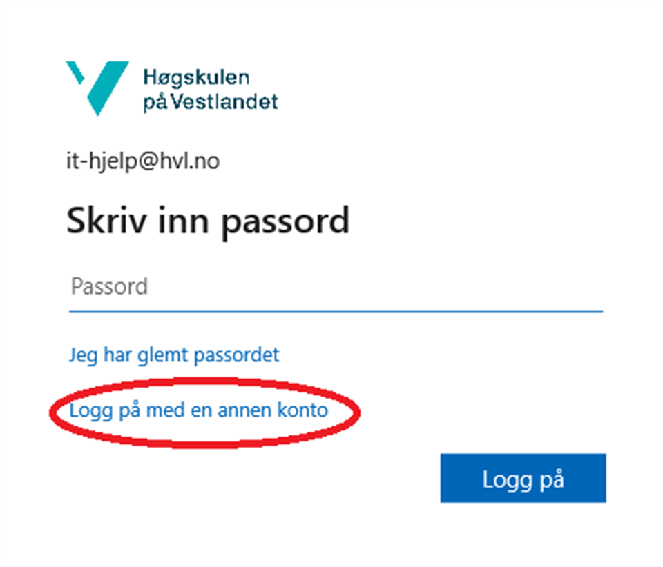 Ettersom felleskontoane ikkje har passord, må du velje Logg på med ein annan konto. - Skriv inn e-posten din: