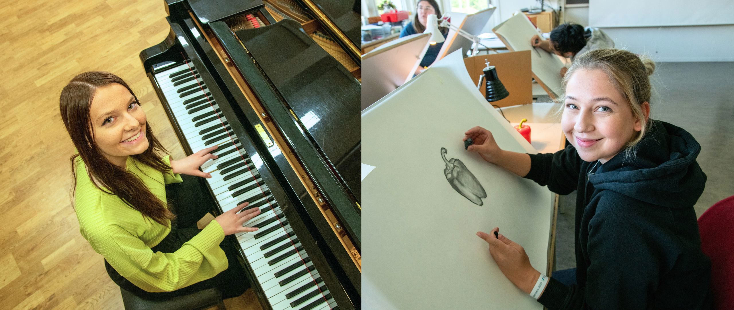 Du kan velje å fordjupe deg i musikk eller visuell kunst. Dette blir utgangspunktet ditt for arbeid med ulike prosjekt, både individuelt og i team. Gjennom å utvikle eigne prosjekt får du også høve til å utforske korleis kunsten kan skape verdi i ulike samanhengar.