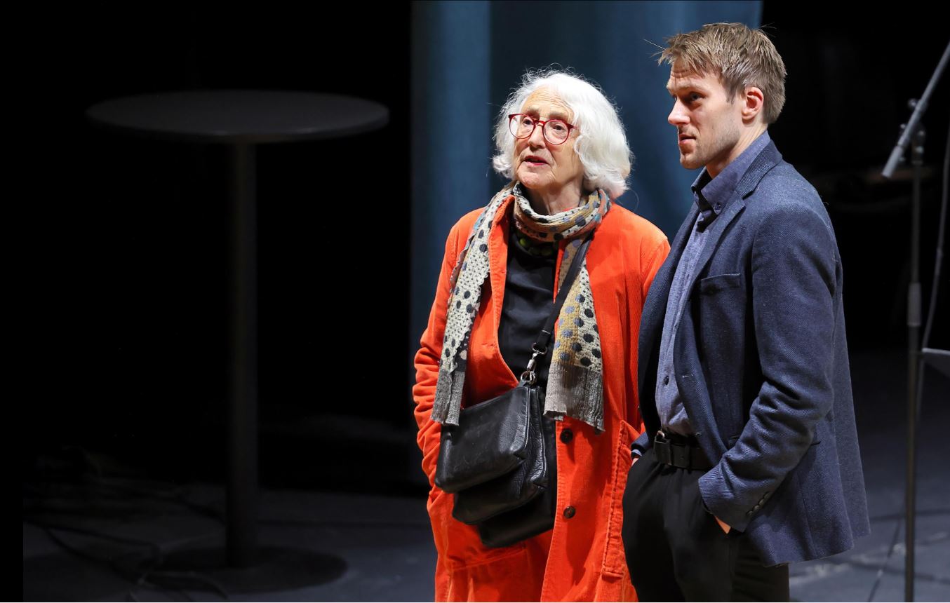 Ph.d-rådgiver og medlem i jubileumskomiteen Rasmus Johansen tar vel i mot tidligere direktør i UNESCO Ingeborg Breines.
