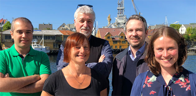 Prosjektgruppen f.v.: Hooshyar Azizpour (Høgskolen på Vestlandet), Helle Asgjerd Oltedal (Høgskolen på Vestlandet), prof. Ed Galea (University of Greenwich), Bjørn-Morten Batalden (UiT Norges arktiske universitet) og Ria Bruenig (Høgskolen på Vestlandet)