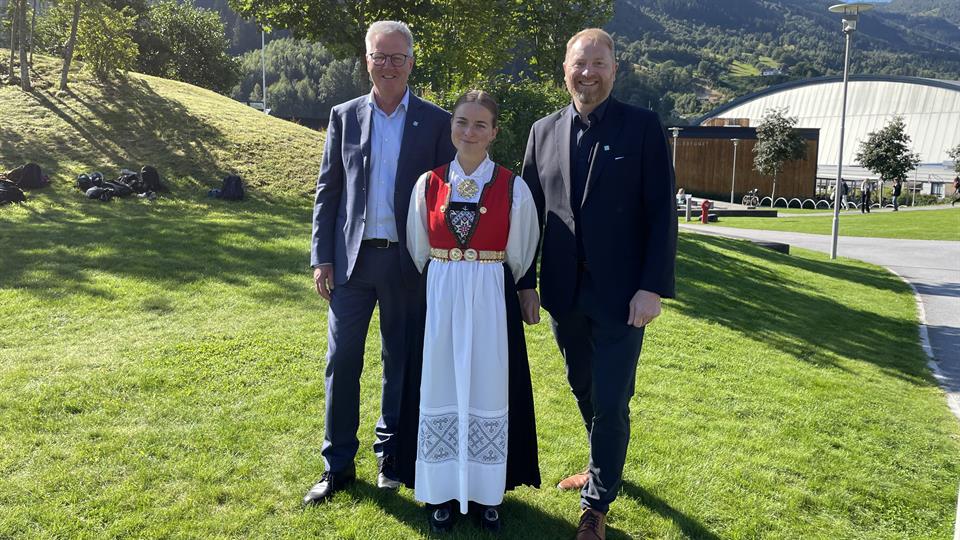 Dekan Asle Holthe, student Nora Lindblad og prorektor for regional utvikling Geir Kåre Resaland.