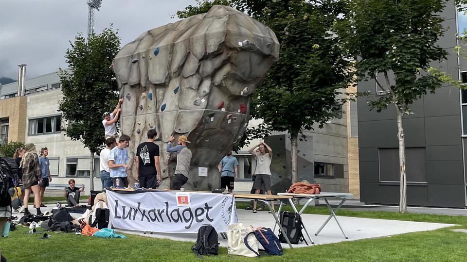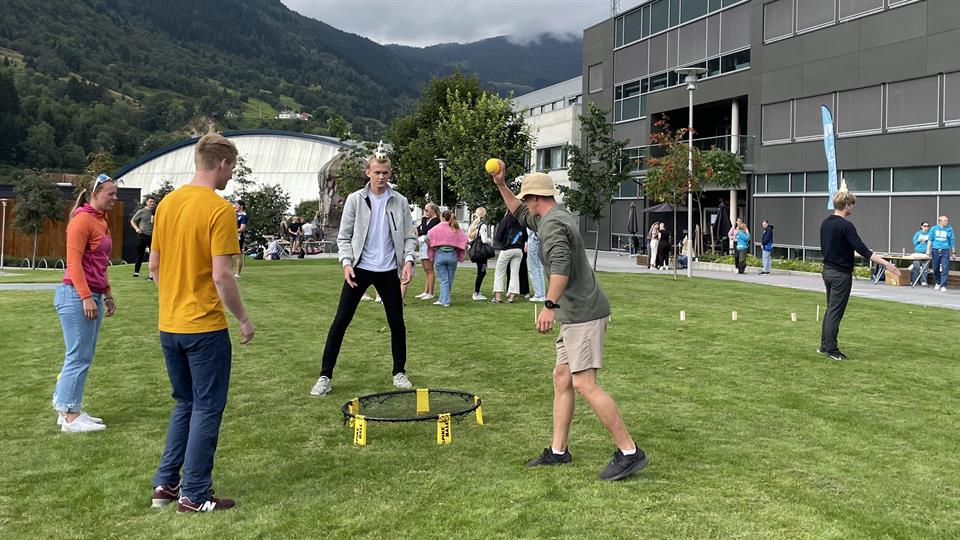 Det var mange aktivitetar for studentar på jubileumsdagen, mellom anna buldring og ball-leik.