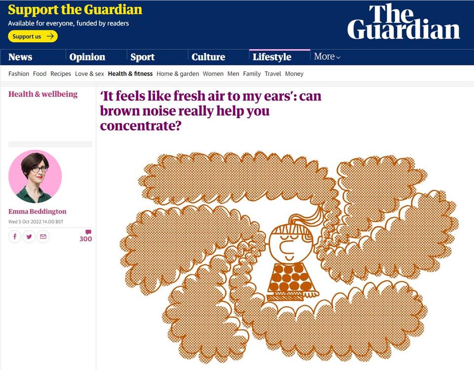 Den veksande kulten kring fenomenet har den siste tida vekka merksemda til store medium som The New York Times, The Guardian og The Washington Post. Söderlund har blitt intervjua av alle desse tre avisene og fleire om vitskapen bak dette, og opplever såleis aukande internasjonal merksemd for støyforskinga si. Alt for 20 år sidan oppdaga han samanhengen som ein del av doktorgradsarbeidet sitt, og han er også den som har forska mest på dette i verda. At så mange folk på nettet uttrykker ekstase over å ha funne hjelp gjennom brun støy, overraskar ikkje Söderlund i det minste: