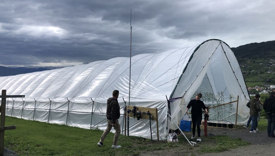 Under ein gjennomsiktig teltduk i bakkane over Sognefjorden, blir lange rekker av høge bringebærskot overvaka av ein liten, gul robot. På det nyopna testanlegget jobbar forskarar og bønder saman med å utvikle framtidas bærnæring.
