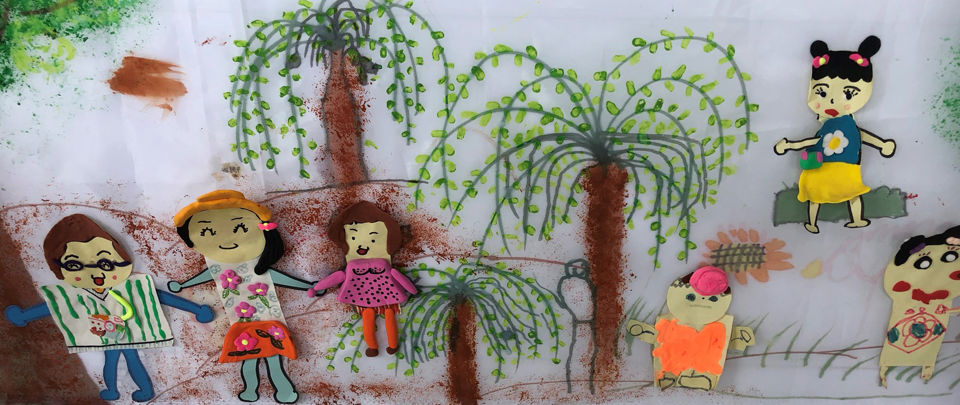 Barneteikningar på veggen i norske barnehagar. Foto: Åsta Birkeland/HVL