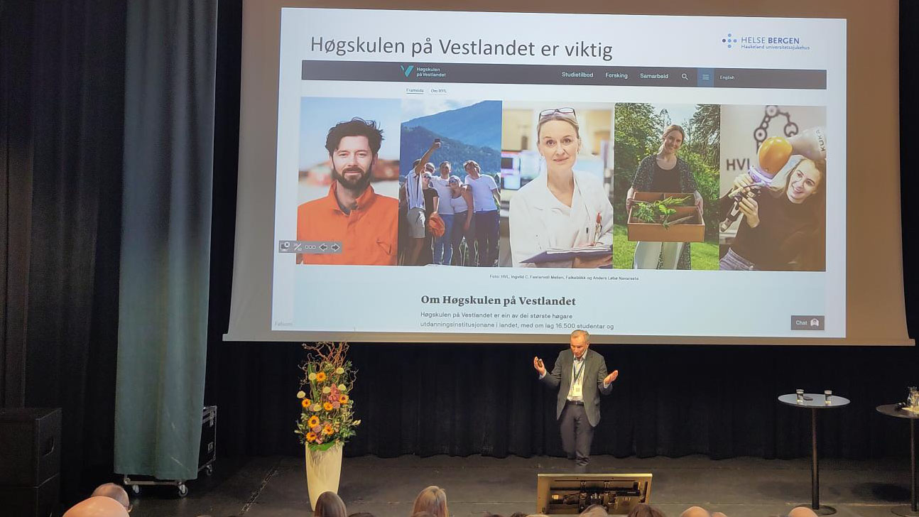– Vi har stort behov for spesialistar i helsevesenet, men vi har også behov for at mange vel grunnutdanningar som bachelorutdanninga i sjukepleie, sa administrerande direktør i Helse Bergen, Eivind Hansen. Han snakka også varmt om verdien av samarbeid og tverrfaglegheit.