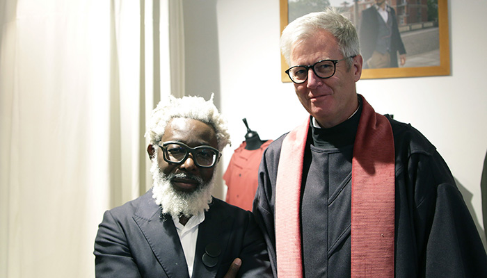 I anledning disputasen har HVL samarbeidet med designeren T. Michael om å produsere disputaskapper for høgskoleledelsen. Sist uke ble kappene testet ut av blant andre dekan ved FLKI, Asle Holthe.