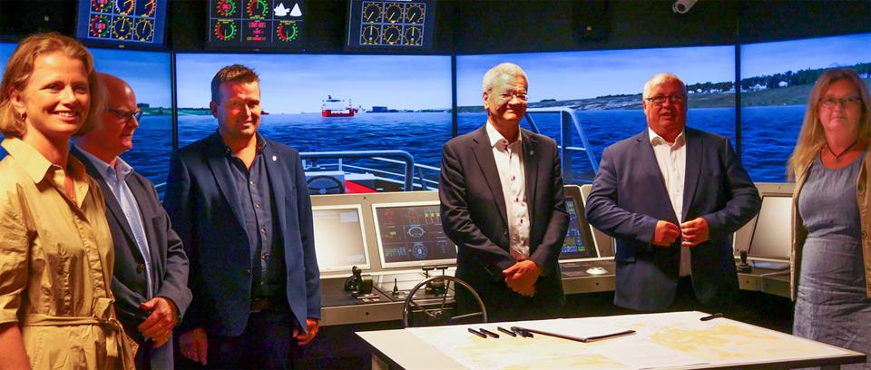 Partnerskapet som skal samarbeide om området representerer hele verdikjeden som trengs for å teste ut fjernstyring og autonome teknologier på en sikker måte til sjøs. I dag ble samarbeidsavtalen signert på HVL sitt maritime simulatorsenter ved campus Haugesund. (Foto: Terje Rudi)