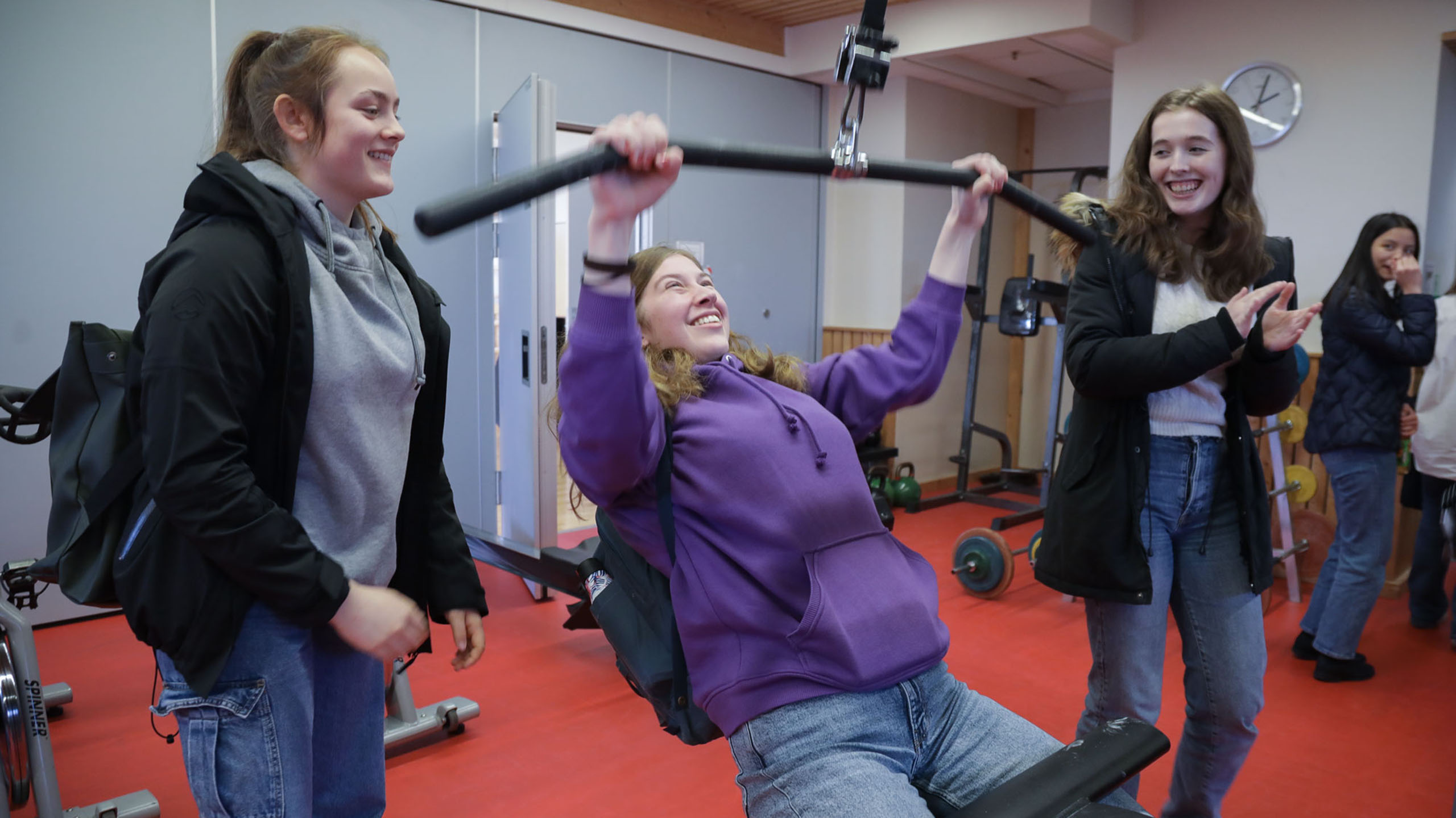 – Me vil studere og ha eit godt treningstilbod» Hedda sit seg ned på eit treningsapparat og Natalie og Ramone tykkjer det er kjempebra at Sammen har så gode treningstilbod på Høgskular og Universitet. Dette er eit viktig tilbod og eit stort pluss i studiekvardagen tykkjer dei.