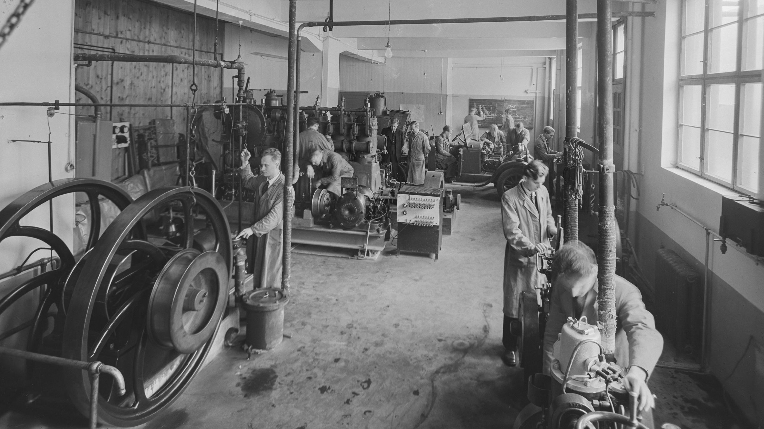 Foto frå maskinrommet ved BTS: Atelier KK, Universitetsbiblioteket i Bergen. Maskinrommet ved Bergen Tekniske Skole. (1927-37).