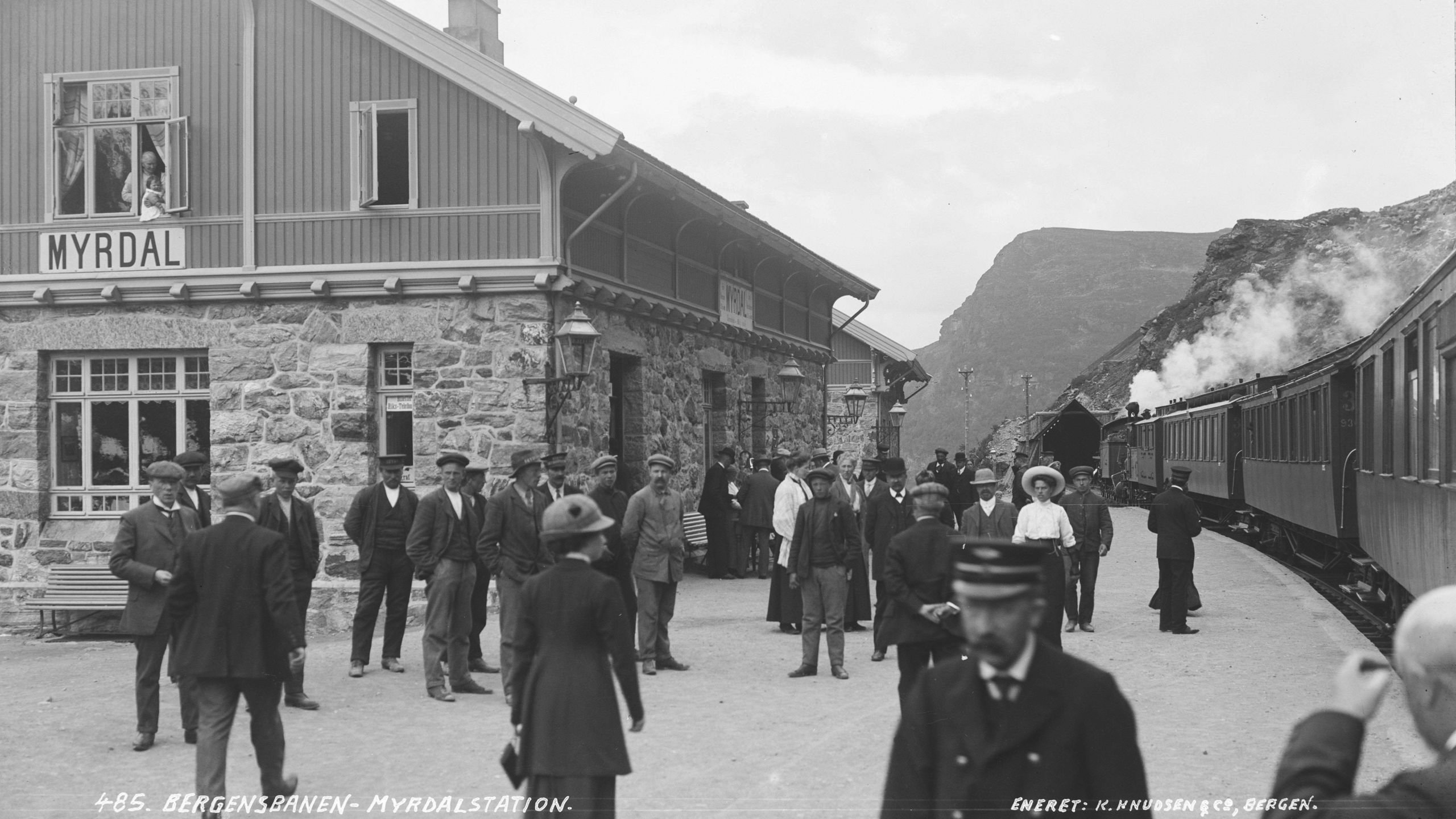 Foto frå Myrdal stasjon, Bergensbanen: K. Knudsen & co, Universitetsbiblioteket i Bergen.
