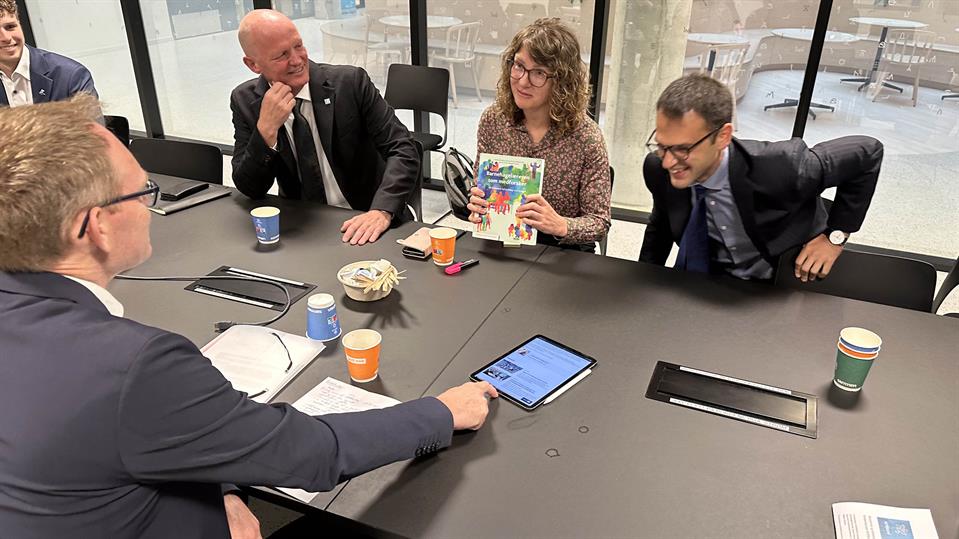 Datateknologi, jordmor og BARNkunne - Senter for barnehageforskning. Tre solide fagmiljø fikk tjue minutter hver med statsråd Oddmund Hoel på HVL, campus Bergen i dag.