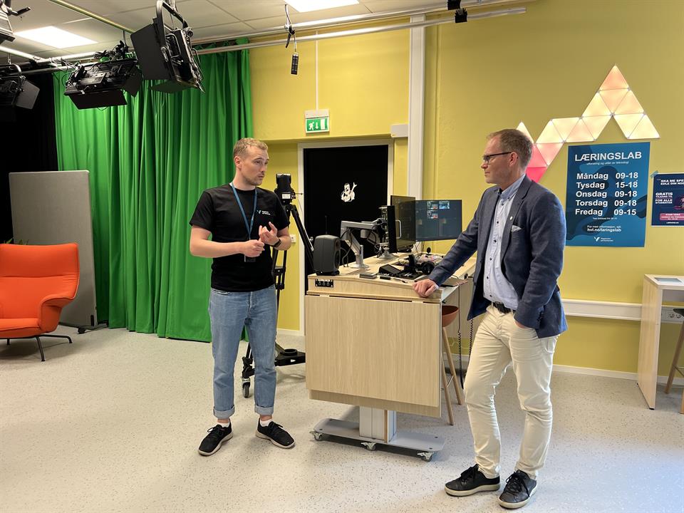 På gamingsenteret og læringslabben møtte statsråden rådgiverne Håkon Bøyum og Torkjell Einarson Venjum. De fortalte om hvordan digitale verktøy brukes aktivt i læring og undervisning. Bøyum veileder for tiden barnevernsstudenter, og statsråden fikk en presentasjon av hvordan spillteknologi integreres i læring myntet på elever i barneskolen.