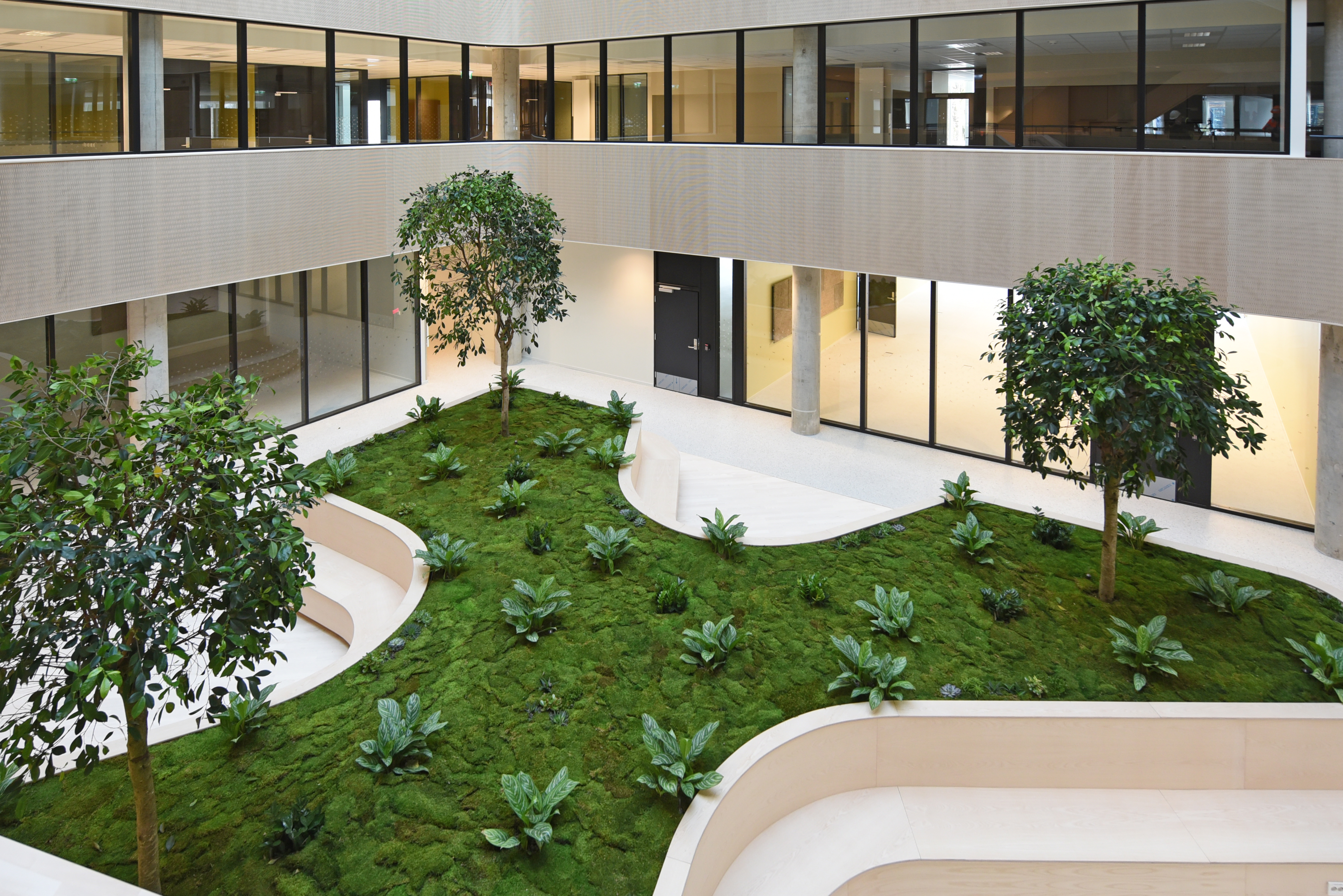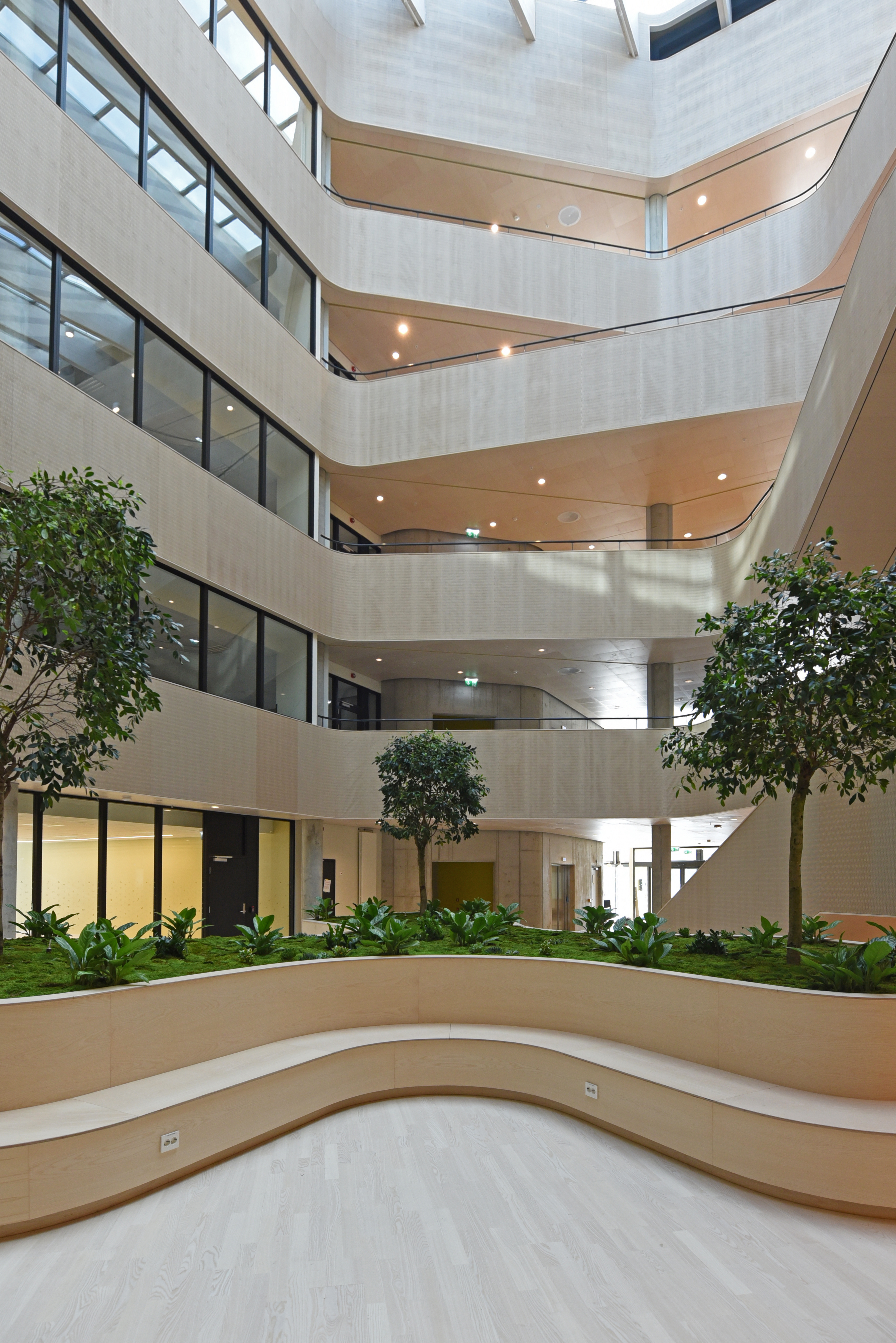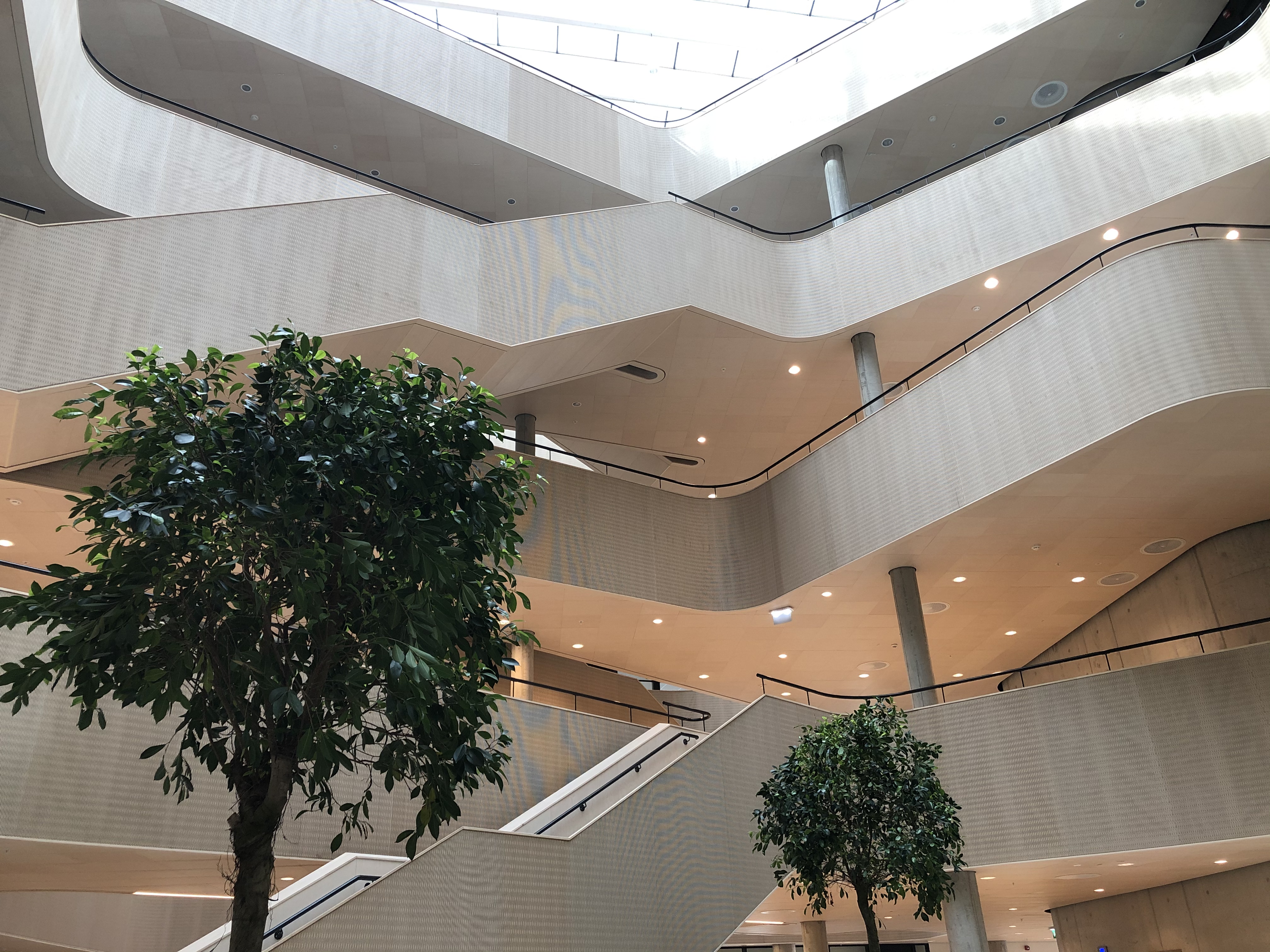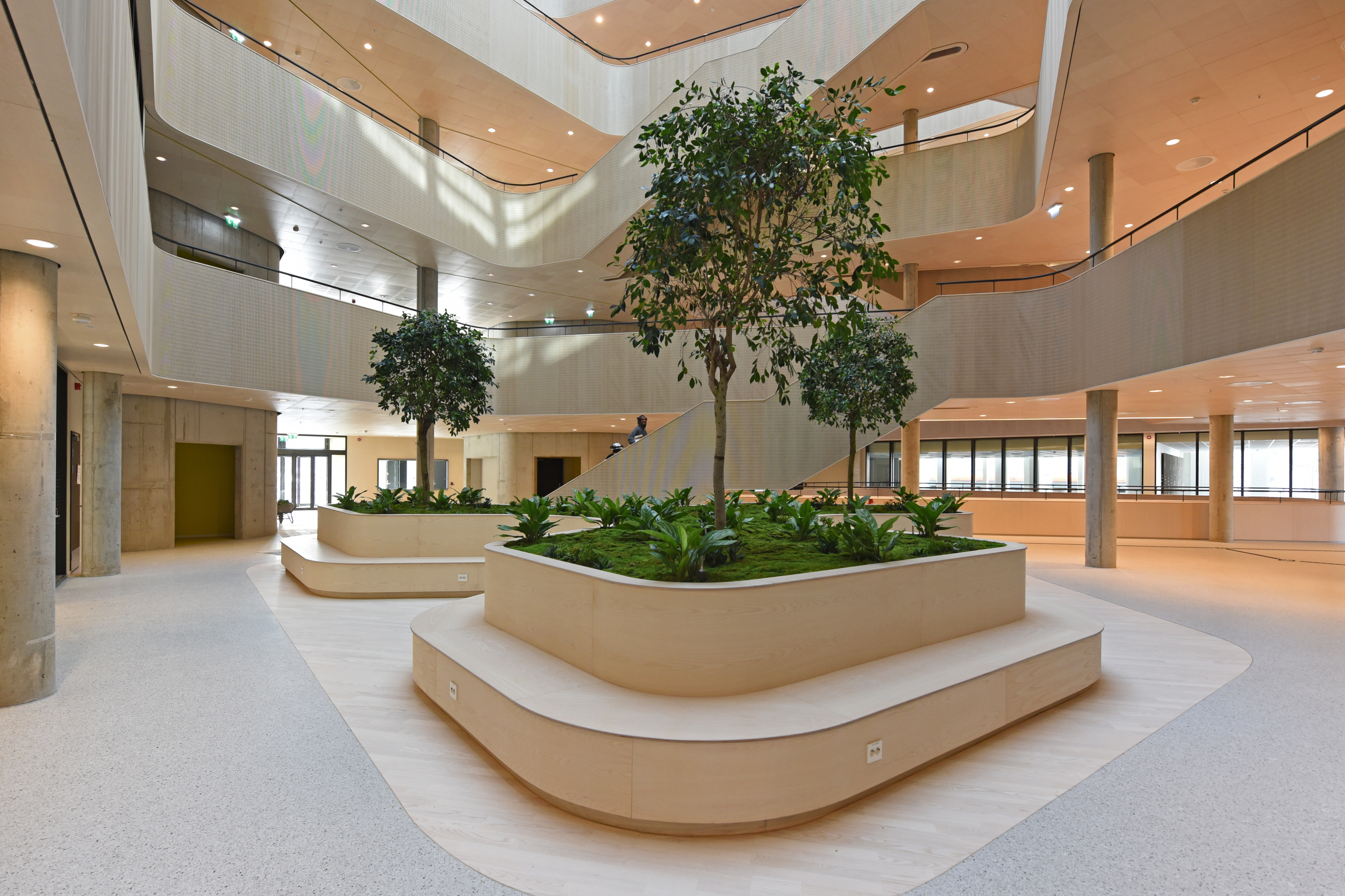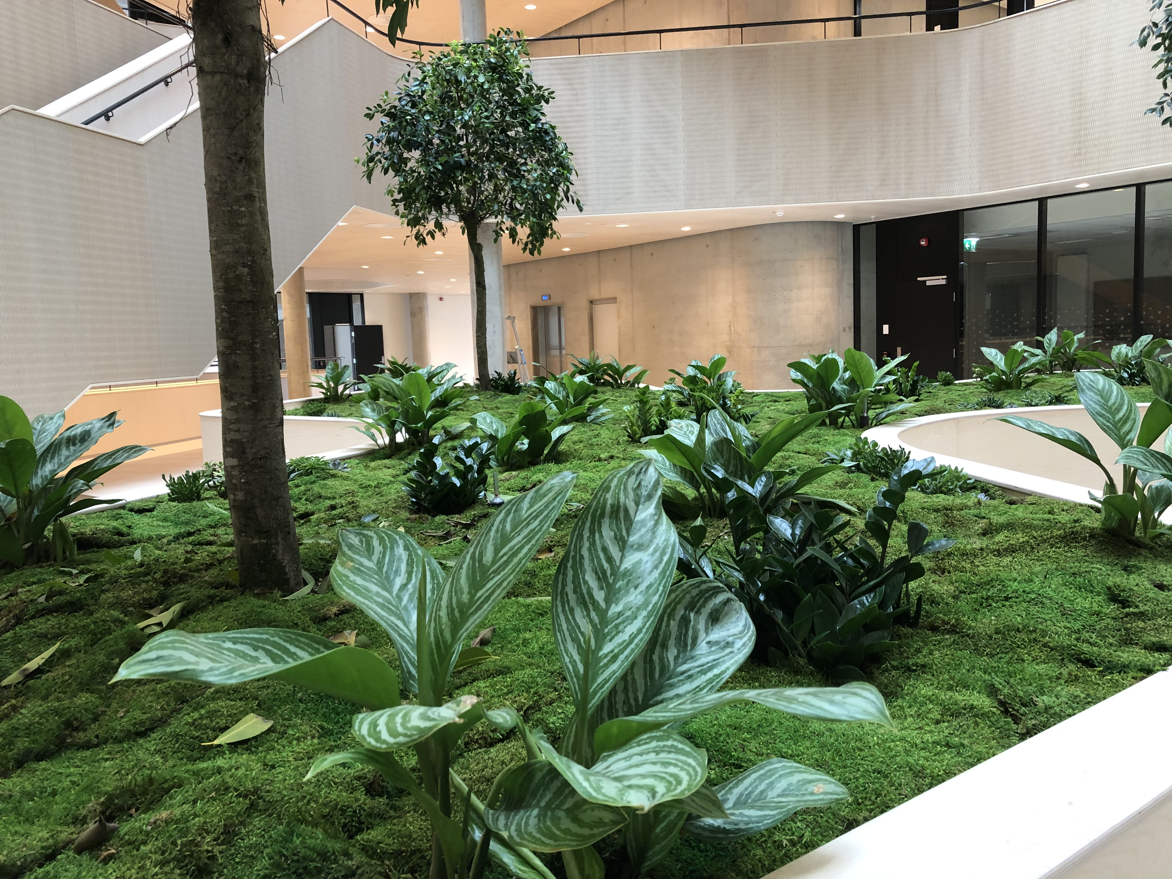 Noe av det mest særegne med bygget er likevel de tre store trærne i bjørkefamilien, som med tiden vil strekke seg høyere opp mot glasstaket.