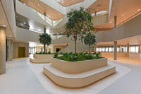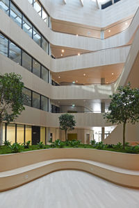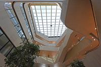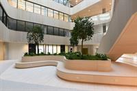 Noe av det mest særegne med bygget er likevel de tre store trærne i bjørkefamilien, som med tiden vil strekke seg høyere opp mot glasstaket.