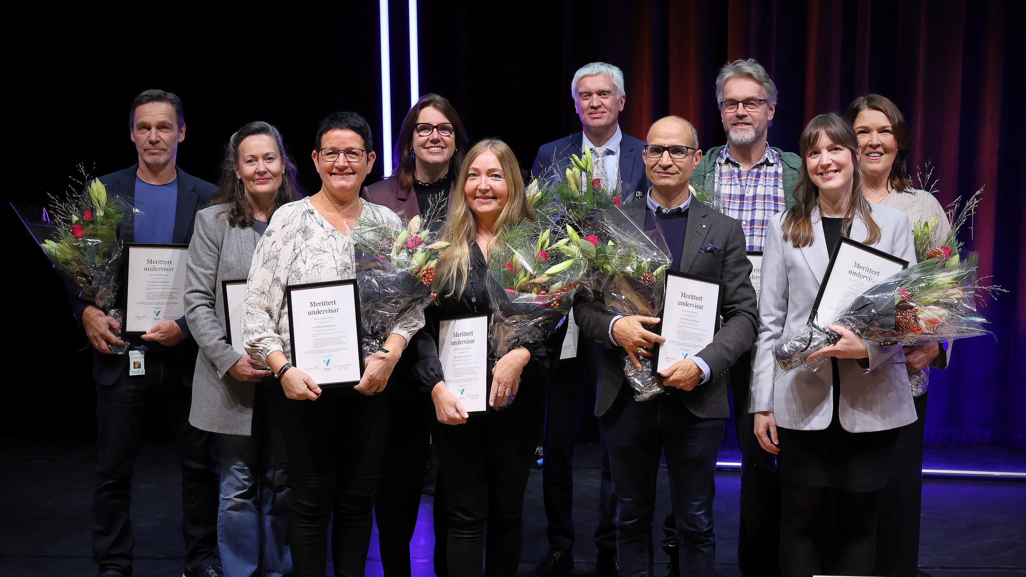 Tidlegare i haust blei det klart at 13 tilsette fekk tildelt statusen som merittert undervisar. Desse fekk heider og diplom under prisutdelinga.