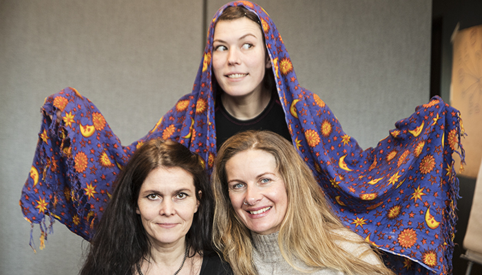 Marte Rosenvinge, Trine Ask og Ingelin Mjåseth Hilland utviklar ei interaktiv teaterforestilling for unge.