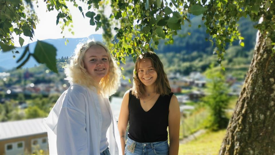 Frida Adeleide Hestnes Kvamme og Synne Madsen gler seg til å hjelpe andre studentar med fag.