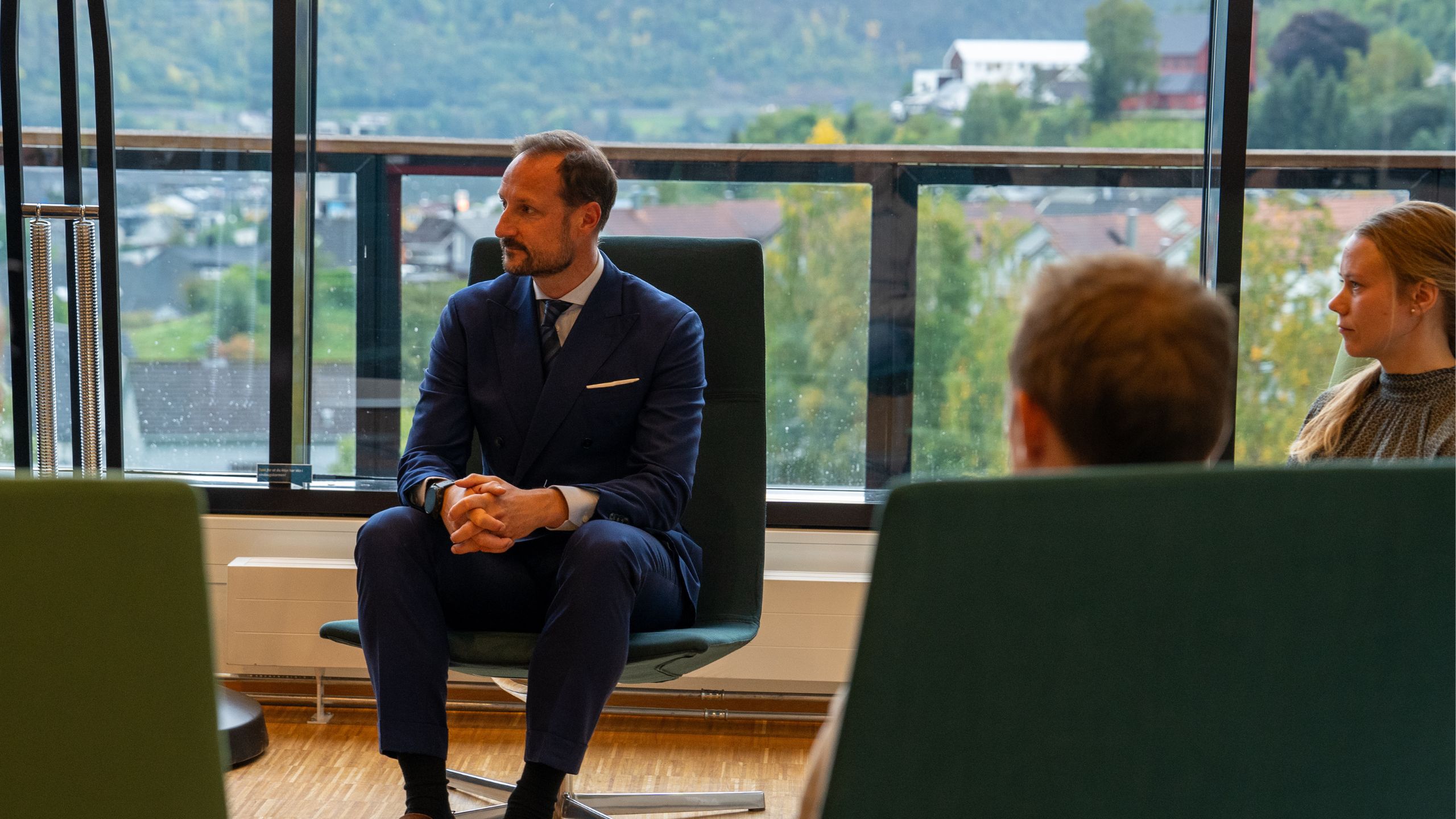 Kronprinsen diskuterte klimaforsking då han besøkte Høgskulen på Vestlandet, campus Sogndal