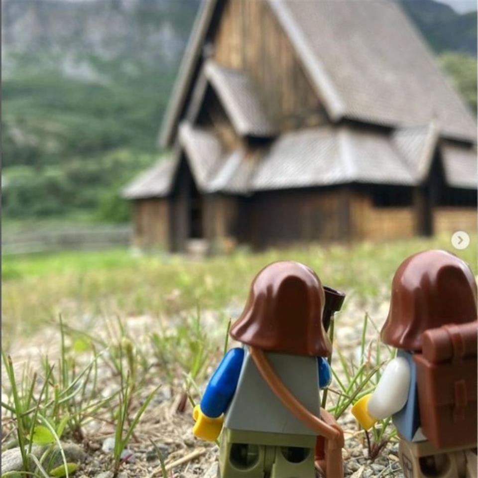 Ein annan ting han berre må no, er å orientere seg grundig i framkant av reiser. Finst det nokre ruinar, kyrkjer eller katedralar dei kan oppsøke der dei skal? Han har teke med seg vikingar og pilegrimar i legoform kringom i heile Noreg og teke bilde framfor alle stavkyrkjer mellom Sogn og Austlandet.