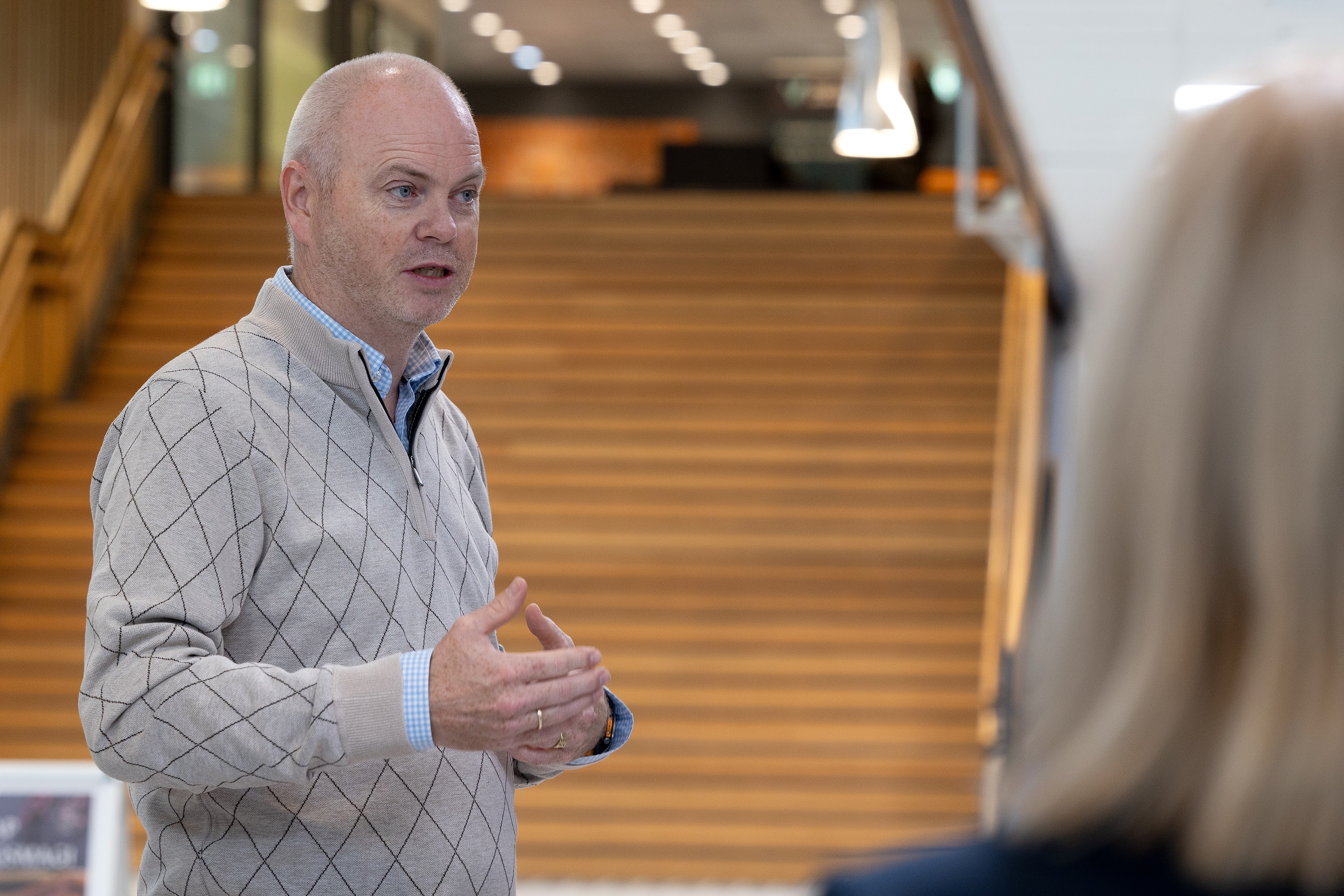 – K1 er bygd slik at du sit og studerer i offentlege areal som gangar, opne plassar og torg. Ein har gått for veldig fast møblering, fortel Laastad.