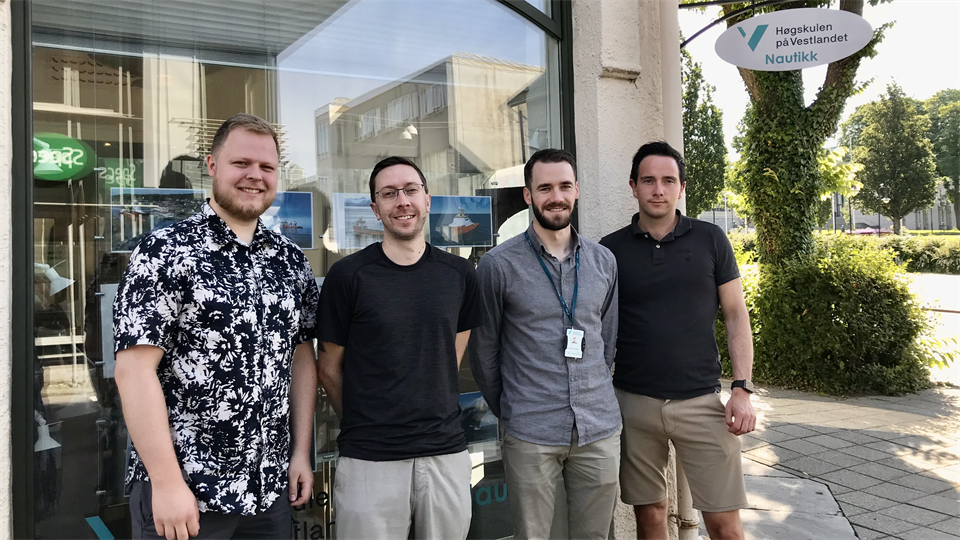 Sommarstudentane er sjølvstendige, men har fleire fagpersonar å støtte seg på. Frå venstre Jonas Retzius, Joel Scanlan, Kristoffer Fagervoll Sortland og Carsten Mannes.