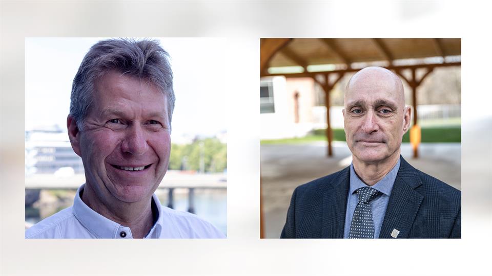Bilde: Frode F. Jacobsen ved Senter for omsorgsforskning Vest og Malcom B. Doupe fra University of Manitoba i Canada, leder forskningsprosjektet K2A. De skal undersøke hvilke pasientoverføringer av sykehjemspasienter som kan unngås, og hvordan de som bør gjennomføres kan forbedres.