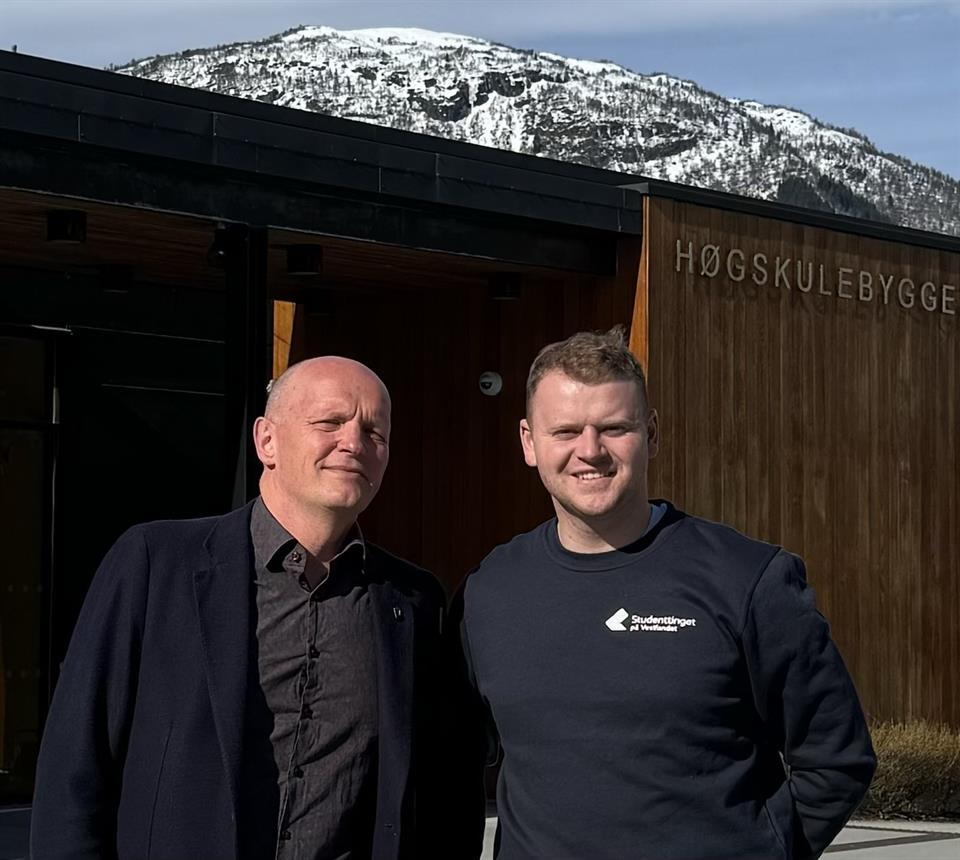 Rektor Gunnar Yttri og studentleiar i Sogndal Mathias Havnen Tønnessen.