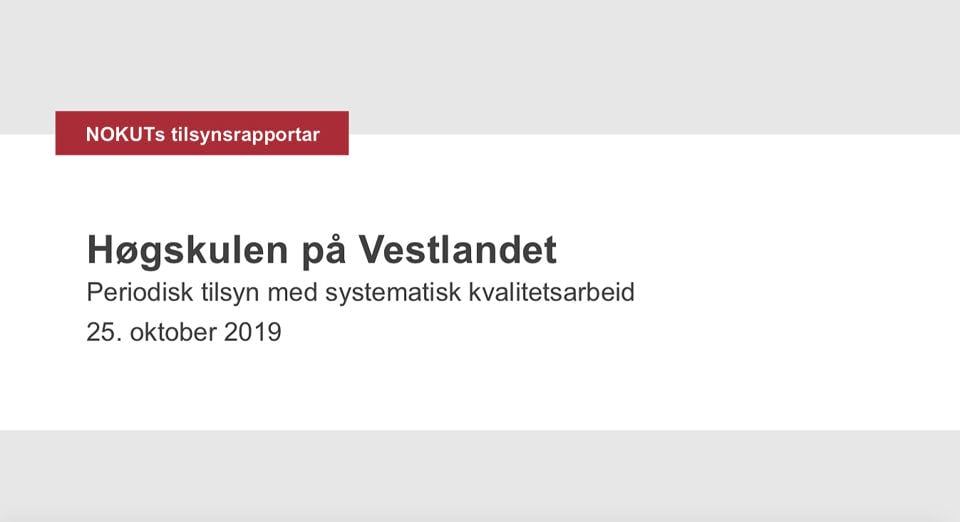 - Tilbakemeldingane elles frå NOKUT er heilt i tråd med eigne vurderingar, og vi vil bruke tilrådingane frå rapporten i vårt vidare arbeid med det systematiske kvalitetsarbeidet på HVL, seier Selvik.