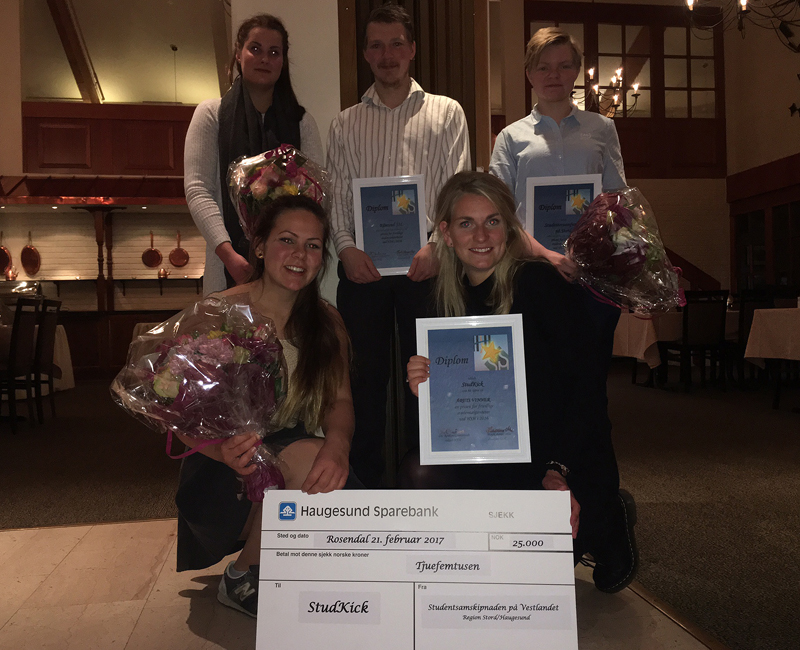 Under Læringsmiljøkonferansen som nærregion Stord/Haugesund arrangerer kvart år i Rosendal blei det delt ut to prisar til. Årets studentforeining blei Studkick. Prisen er eit reisestipend på kroner 25 000. Det skal brukast til å reisa ut og henta inspirasjon til vidare arbeid.