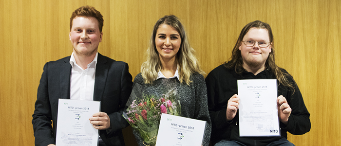 NITO-prisen blir delt ut til studentar som har levert oppgåva med størst innovasjonspotensiale. Vinnarane blei Eivind Lervik, Michelle Sæther Nassif og Pål Vårdal Gjerde frå Institutt for data- og realfag. Dei hadde skrive oppgåva «Øyriker – Et motivasjonspill for elever!», i samarbeid med Olsvikåsen vidaregåande skule.