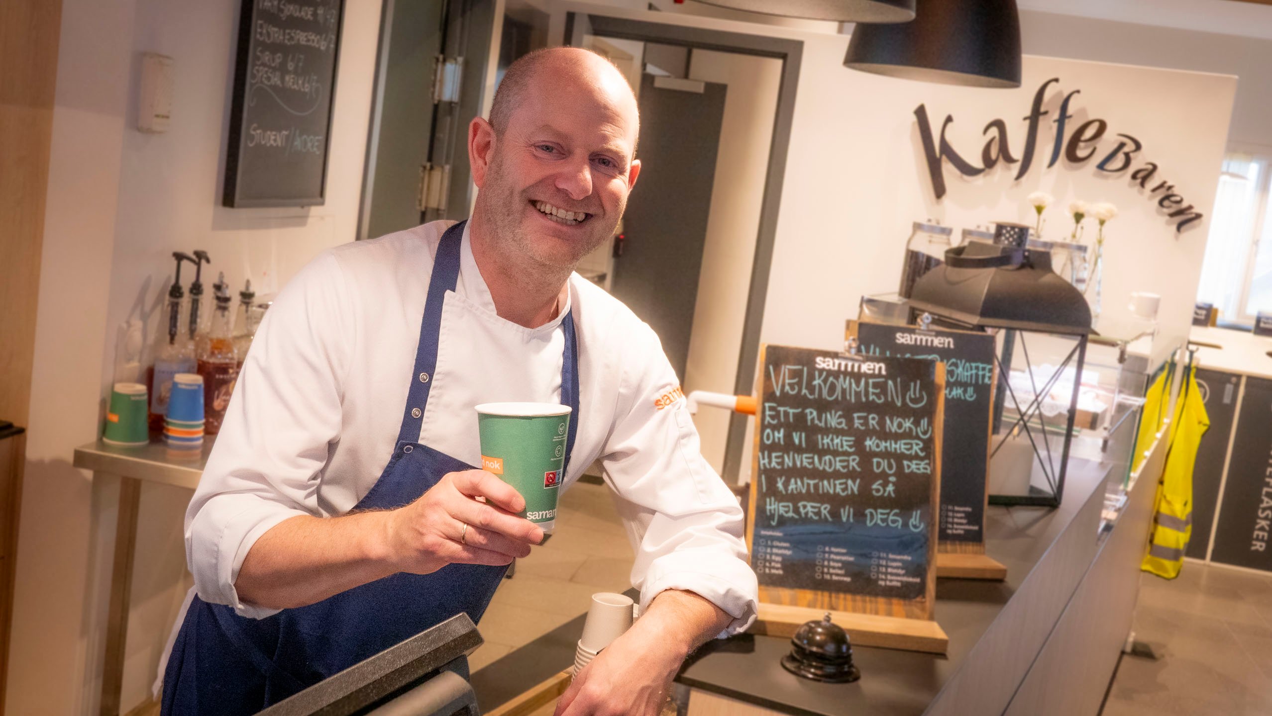 Kaféleder Vidar Valdersnes i Haugesund vil gjøre alt han kan for å få til et godt kantinetilbud under studiestarten i august. Foto: Terje Rudi.