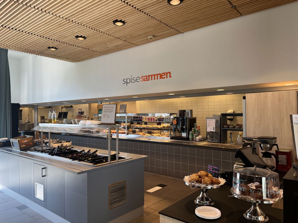 Kaffebaren, som ligger like ved dagens kantineområde, vil være åpen fra og med studiestart. I en overgang mellom gammel og ny kantine er det her Sammen ser for seg at de vil ha utsalg av mat og drikke