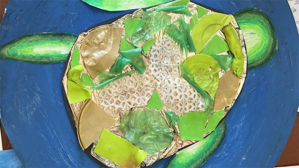 Kunst laga av plast frå ei strand i Durban. Foto: Berea Primary school