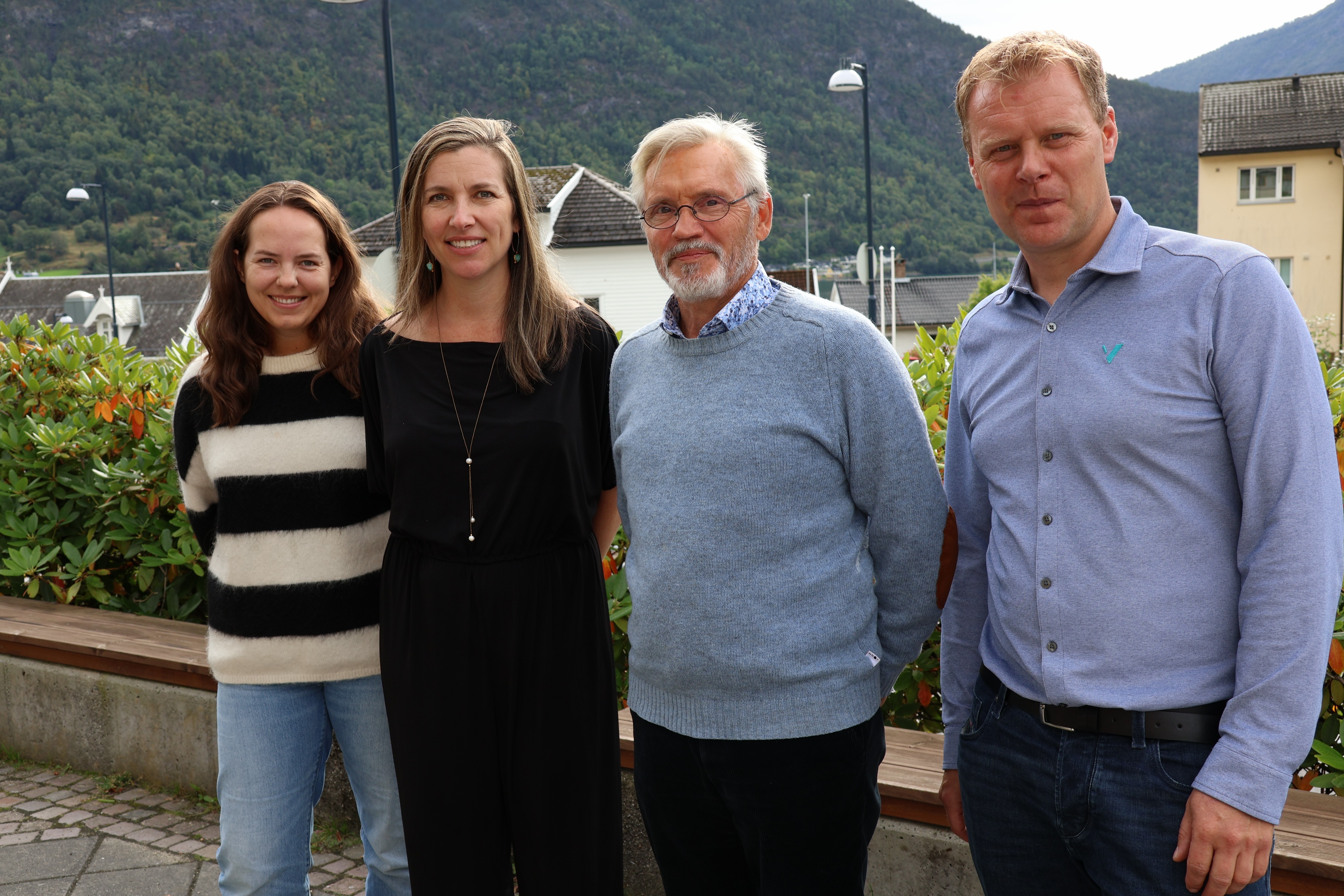 Frå venstre: student Thea Wigum, Sarah Newman, Eivind Rogne og Jan Erik Ølmheim. (foto: Eline Lundervold/HVL).
